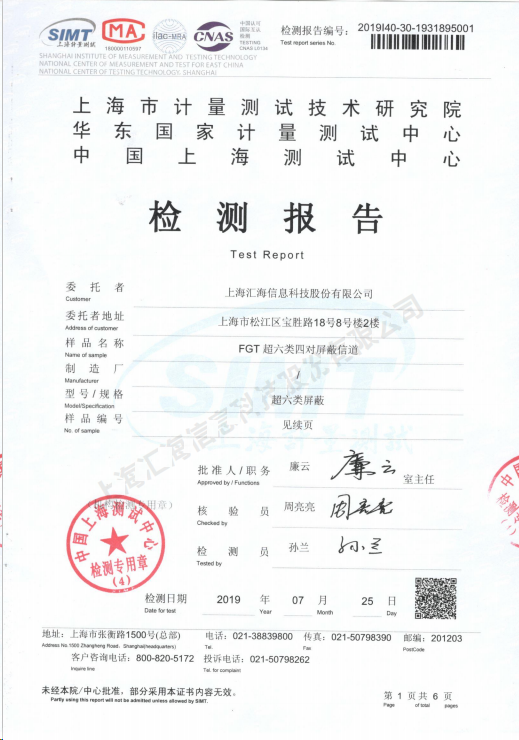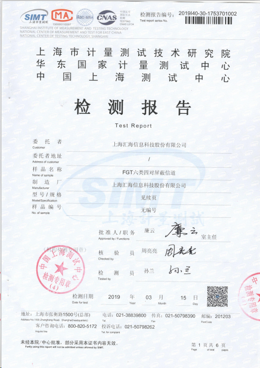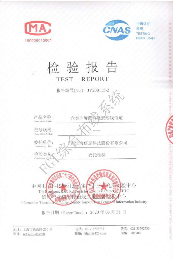 超六類屏蔽信道檢測(cè)報(bào)告