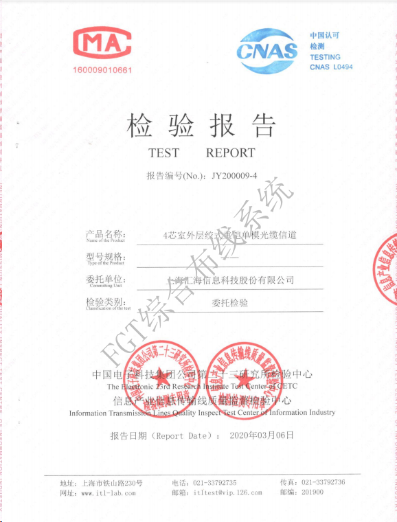 4芯室外層絞式重鎧單模檢測(cè)報(bào)告
