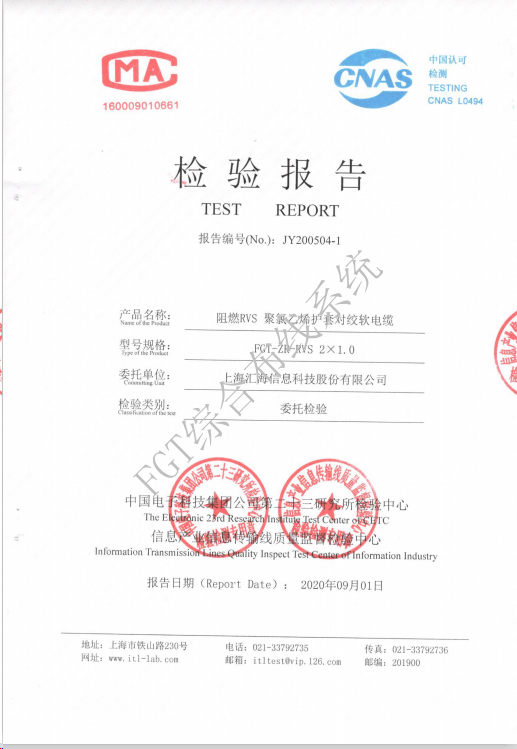 阻燃ZR-RVS2x1.0電線檢測(cè)報(bào)告