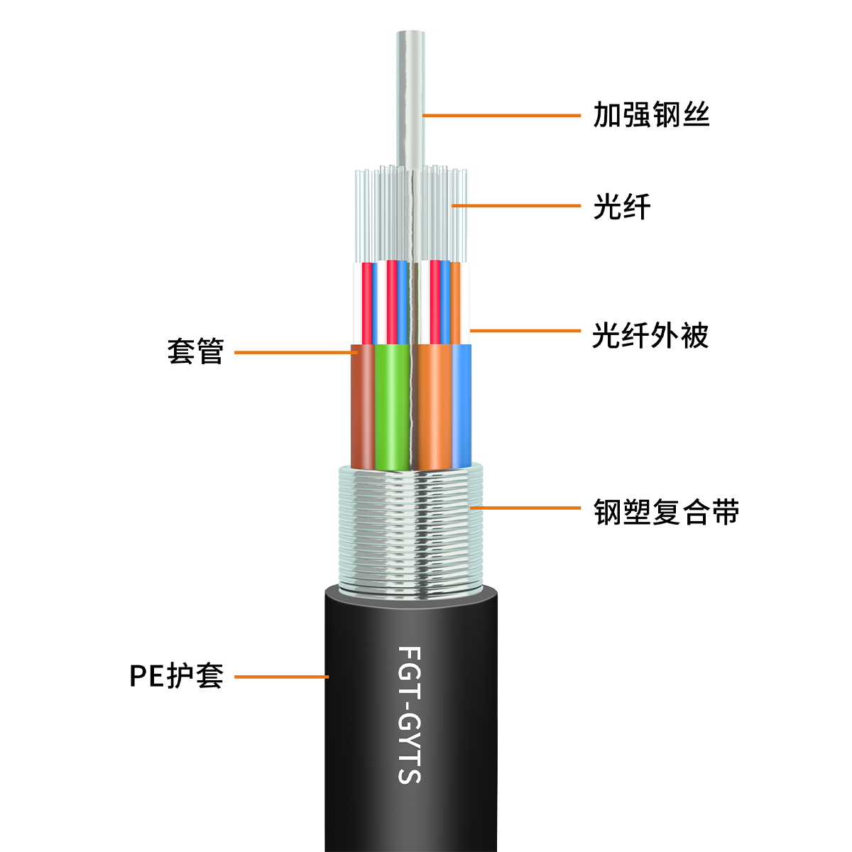 FGT 層絞式系列光纜,也稱GYTS/GYTA光纜,執行標準:IEC 60793YD/T 901ISO/IEC 11801ANSI/TIA-568.3-D,產品達到國內先進水平